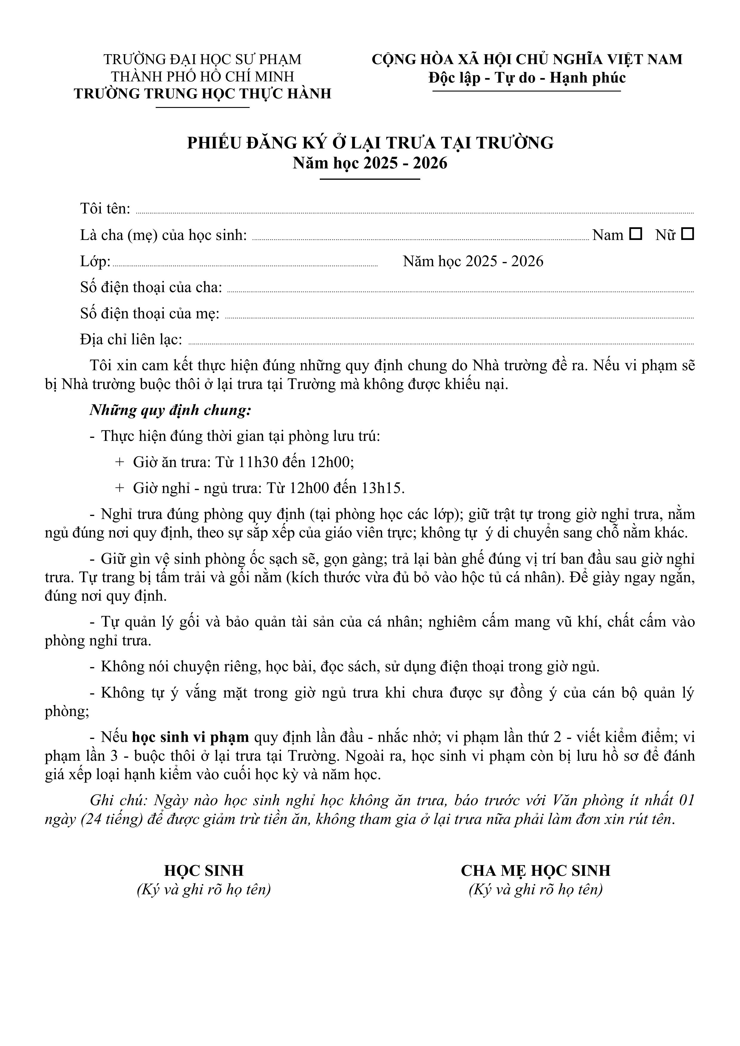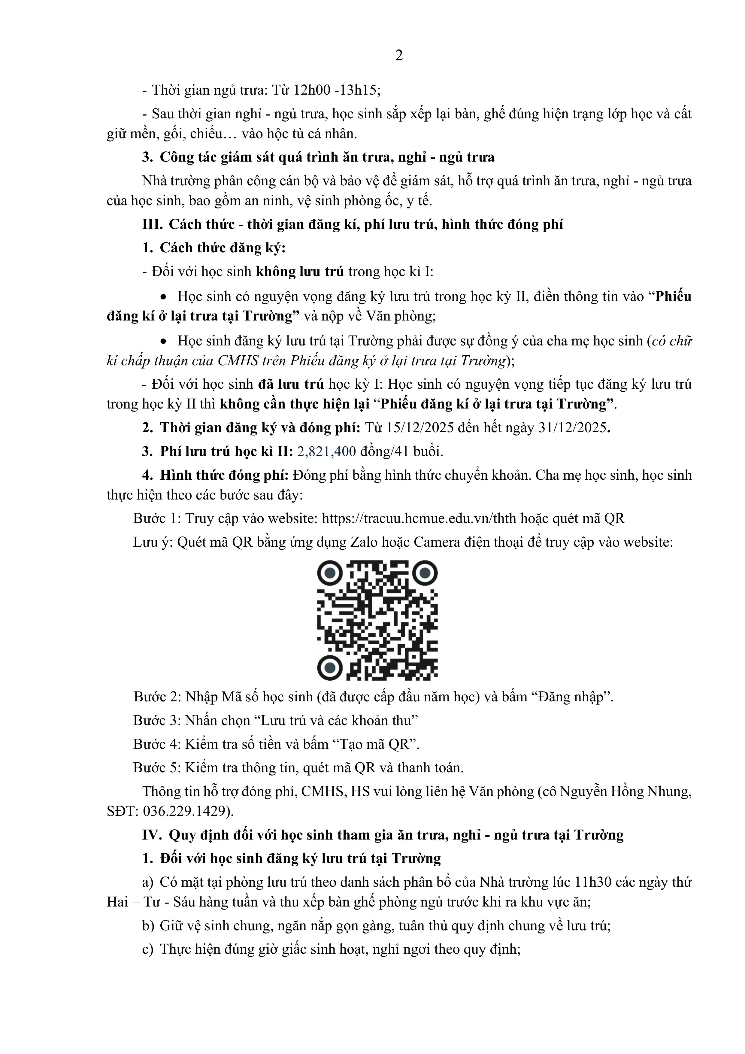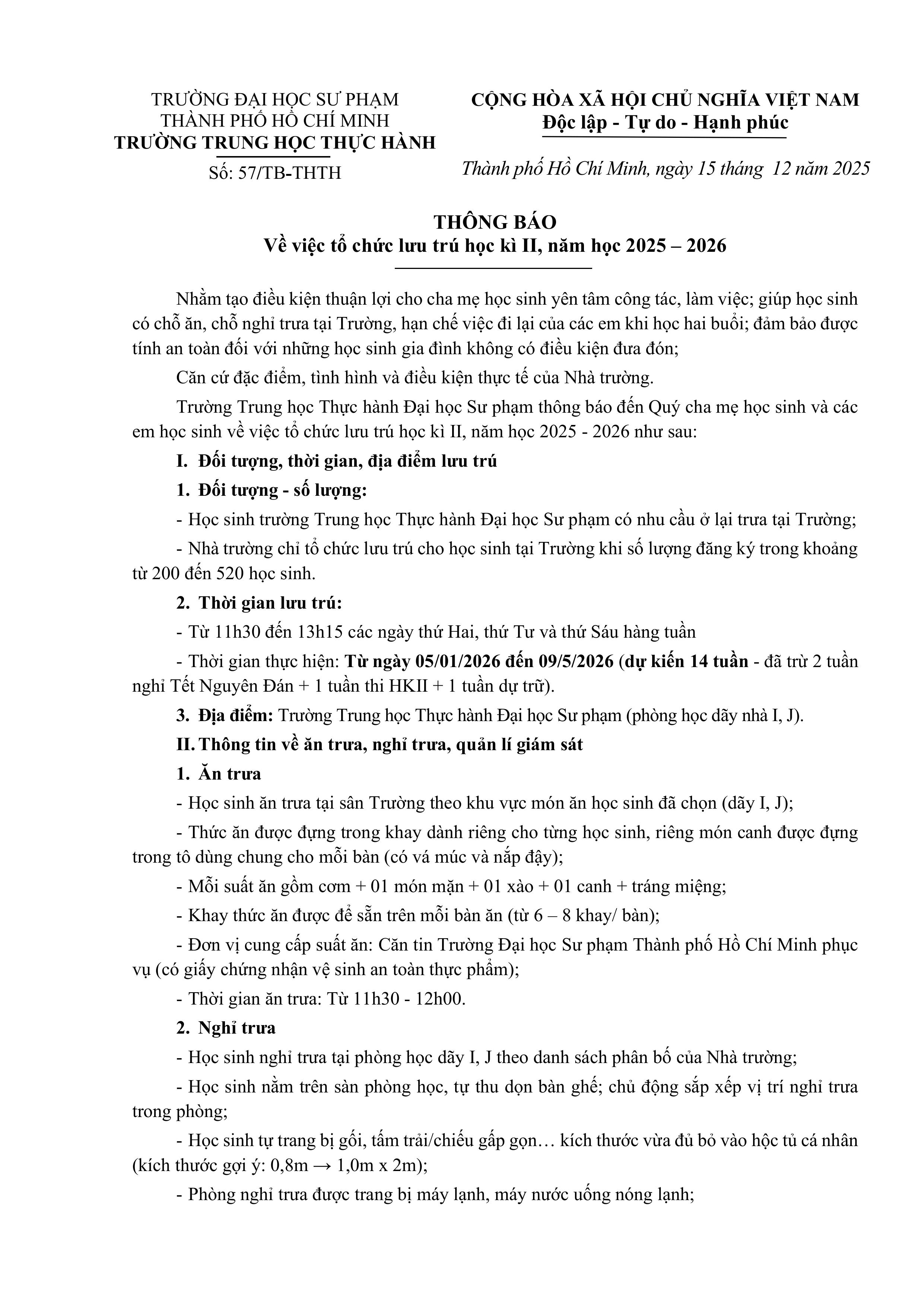 THÔNG BÁO TỔ CHỨC LƯU TRÚ HKII, NĂM HỌC 2025 - 2026 Trung Học Thực Hành 19 Tháng 12 2025 Lượt xem: 139