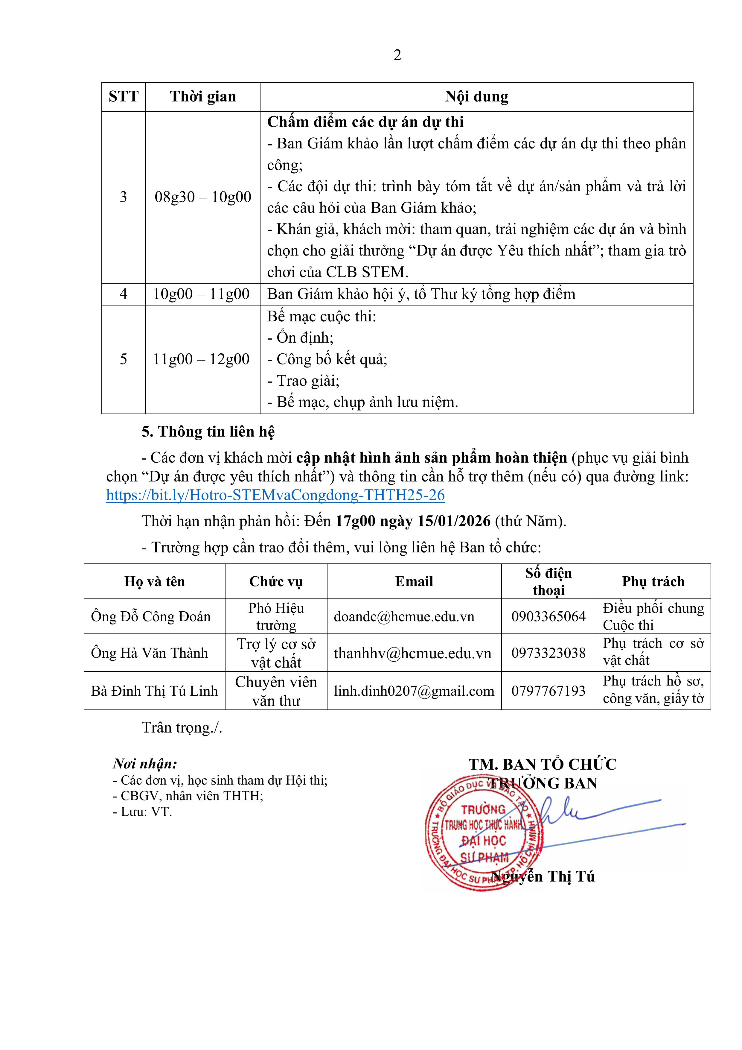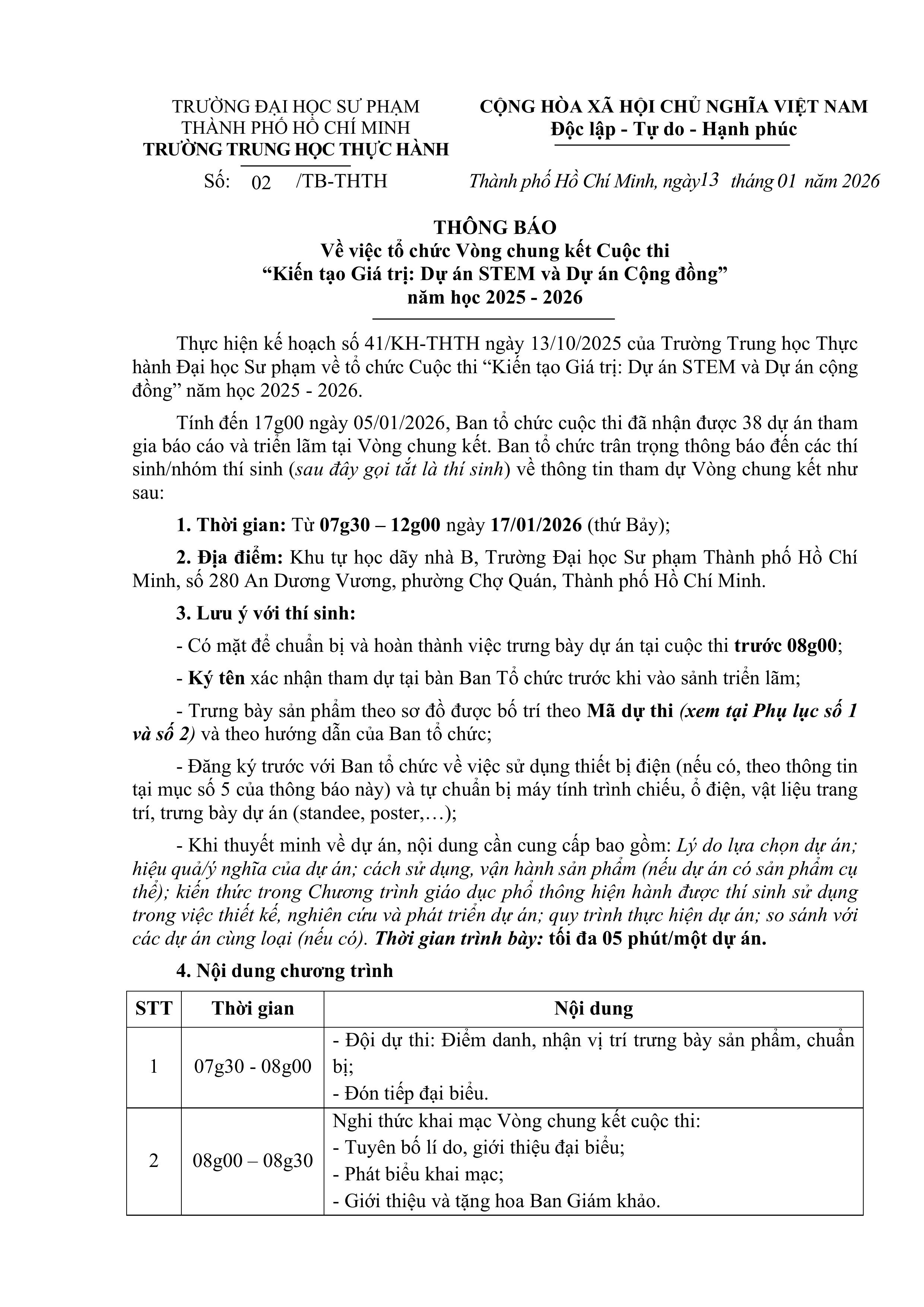Trang chủ THÔNG BÁO TỔ CHỨC CHUNG KẾT CUỘC THI "KIẾN TẠO GIÁ TRỊ: DỰ ÁN STEM VÀ DỰ ÁN CỘNG ĐỒNG", NĂM HỌC 2025 - 2026 Trung Học Thực Hành 13 Tháng 1 2026 Lượt xem: 77