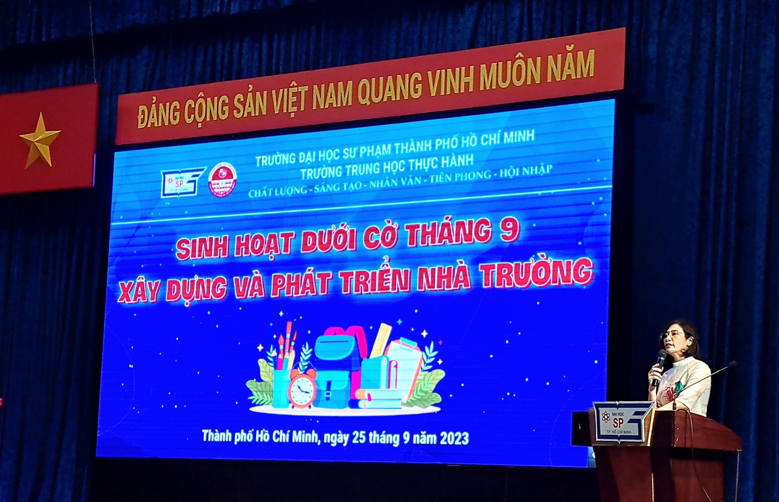 SINH HOẠT DƯỚI CỜ THÁNG 9 “XÂY DỰNG VÀ PHÁT TRIỂN NHÀ TRƯỜNG” Trung Học Thực Hành 27 Tháng 9 2023 Lượt xem: 1009